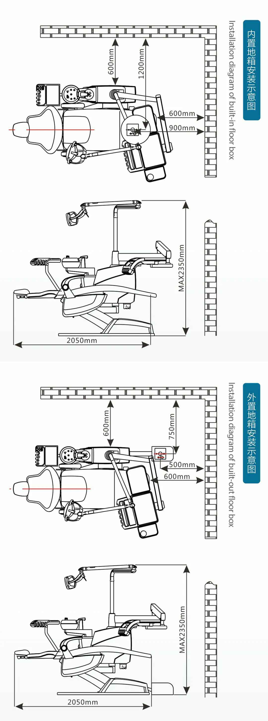 牙椅具有可设置的灯椅联动,冲盂漱口联动等联动功能。